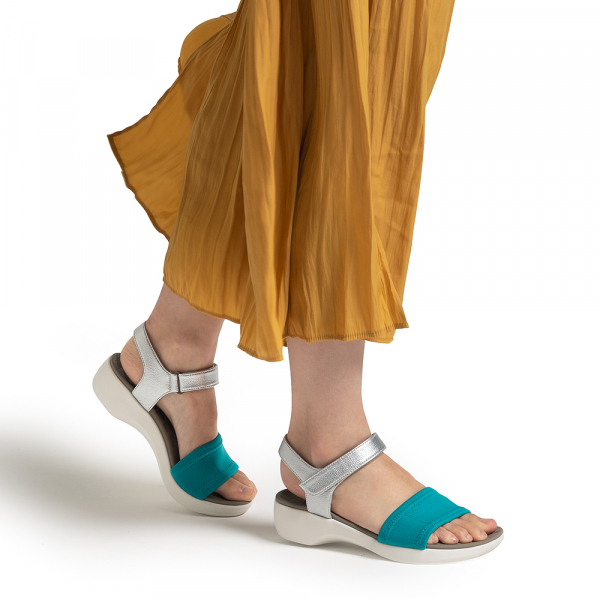 青空や海をイメージする夏らしいターコイズのカラーに、一目惚れされる方も多い、お洒落なサンダルです😊
